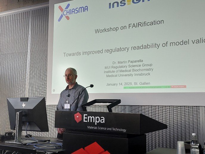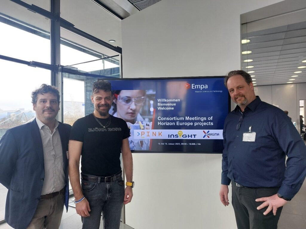 On January 14th in St. Gallen, Switzerland, INSIGHT met for a workshop withtwo Horizon Europe-funded projects at Empa SG. The focus of the workshop was to advance ongoing efforts in applying FAIR principles (Findable, Accessible, Interoperable, Reusable) to scientific data management. This meeting, focused on addressing key challenges in data curation, model validation, and regulatory usability, with the goal of improving transparency and fostering trust in scientific research. The three participants discussed the importance of better organize and allow the interoperability of metadata, standardize documentation, and find optimized ways to enhance the accessibility of data, particularly in biomedical and regulatory contexts.